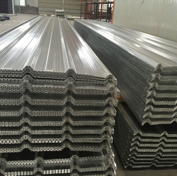 在生產(chǎn)鍍鋁鋅鋼板,表面鍍層為55%的鋁鋅合金,鍍鋁鋅鋼板表面呈特有的光滑、平坦和華麗的星花,基色為銀白色。特殊的鍍層結(jié)構(gòu)使其具有優(yōu)良的耐腐蝕性。鍍鋁鋅板正常使用壽命可達(dá)25a,耐熱性很好,可用于315℃的高溫環(huán)境;鍍層與漆膜的附著力好,具有良好的加工性能,可以進(jìn)行沖壓、剪切、焊接等;表面導(dǎo)電性很好。鍍層成份按重量比率分別由55%的鋁和43.4%的鋅,1.6%的硅組成。鍍鋁鋅鋼板的生產(chǎn)工藝與鍍鋅鋼板和鍍鋁板的工藝相似,是連續(xù)熔融鍍層工藝。55%鋁鋅合金鍍層的鍍鋁鋅鋼板當(dāng)雙面暴露于同樣的環(huán)境時(shí)與相同厚度的鍍鋅鋼板相比具有更優(yōu)越的耐腐蝕性。55%鋁鋅合金鍍層的鍍鋁鋅鋼板不僅具有良好的耐腐蝕性外,彩涂產(chǎn)品具有優(yōu)秀的附著力和柔性。由于鋼板受潮即會(huì)產(chǎn)生氧化銹蝕,故必須在表面加 上防腐保護(hù)層,一般采用的防腐鍍層分為熱浸鍍鋅Zn及熱浸鍍鋁鋅合金Al-Zn(鋁鋅合金成分為鋁55%、鋅43.5%及硅1.5%,簡稱55%Al-Zn)。資料顯示,55%鍍鋁鋅綜合防腐能力為相同厚度鍍鋅的4倍。根據(jù)國外經(jīng)驗(yàn)規(guī)范,通用壓型鋼板(坑板)的基材防腐鍍層應(yīng)不少于熱浸鍍鋅350g/㎡(Z35)或熱浸鍍鋁鋅185 g/㎡(AZ185),而作為建筑結(jié)構(gòu)冷軋型鋼、樓板的最低熱浸鍍鋅層Zinc/Galvanizing規(guī)格為275 g/㎡(Z27),沿海外露部件的要求為350g/㎡(Z35)。熱鍍鋁鋅有眾多的優(yōu)秀性能和特點(diǎn),鍍鋁鋅鋼板具有銀白色的華麗表面,熱反射率很高,是鍍鋅鋼板的兩倍 ,人們經(jīng)常用它來作隔熱的材料;鍍鋁鋅鋼板具有良好的耐熱性,可以承受300多攝氏度的高溫,與鍍鋁鋼板的抗高溫氧化性很類似,經(jīng)常應(yīng)用于煙囪管,烤箱、照明器和日光燈罩;良好的耐腐蝕性主要是因?yàn)殇X,鋁的保護(hù)功能。當(dāng)鋅受到磨損時(shí),鋁便形成一層致密的氧化鋁,阻止耐腐蝕性物質(zhì)進(jìn)一步的腐蝕內(nèi)部。目前主流牌號(hào)有SGLC、SGLD、DX51D+AZ、DX53D+AZ等。